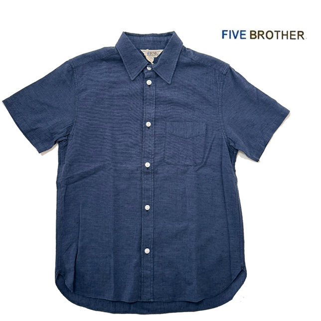 ファイブブラザー 半袖 無地シャツ 綿麻 ネイビー コットンリネンシャツ FIVE BROTHER 151845